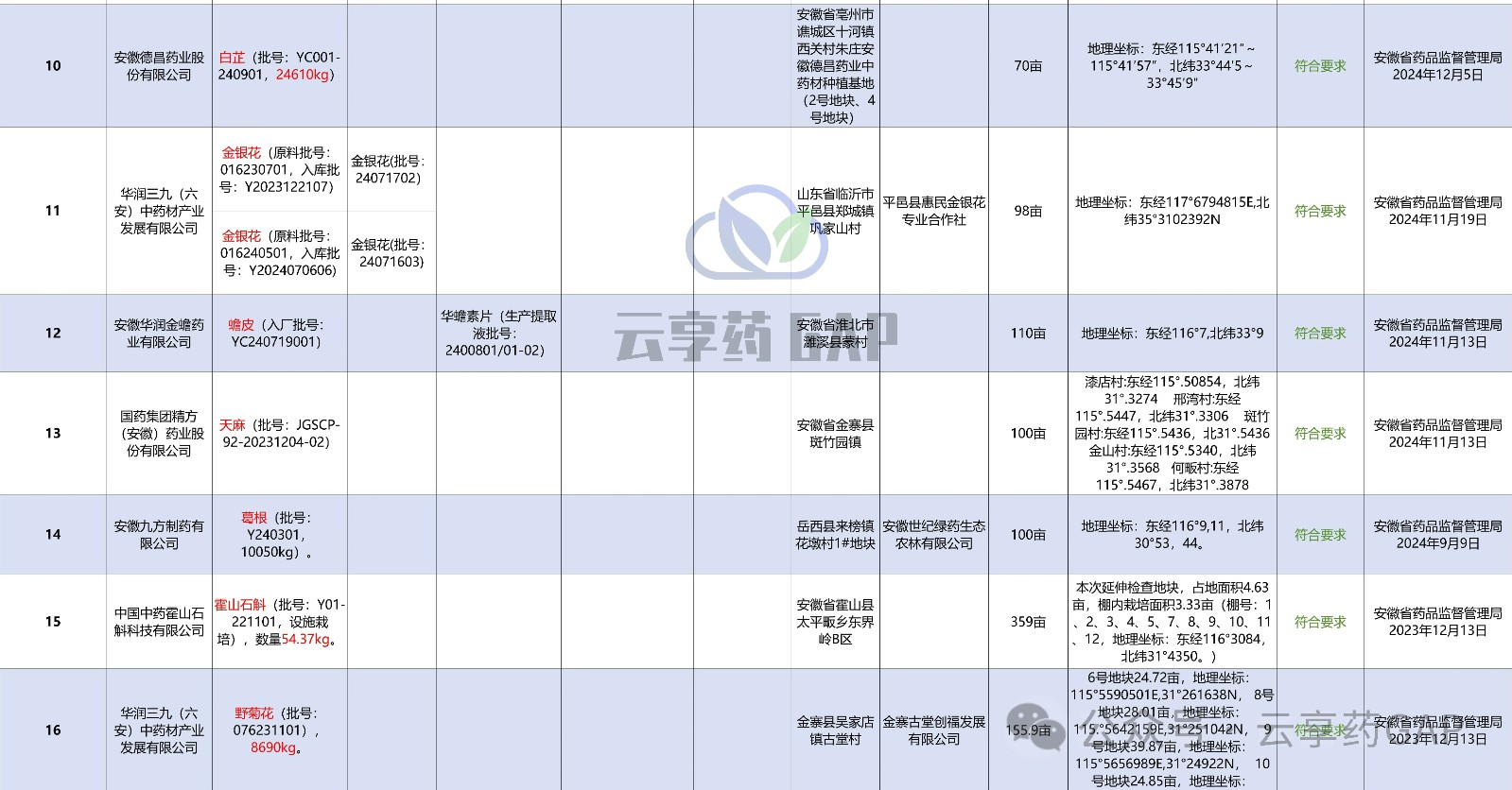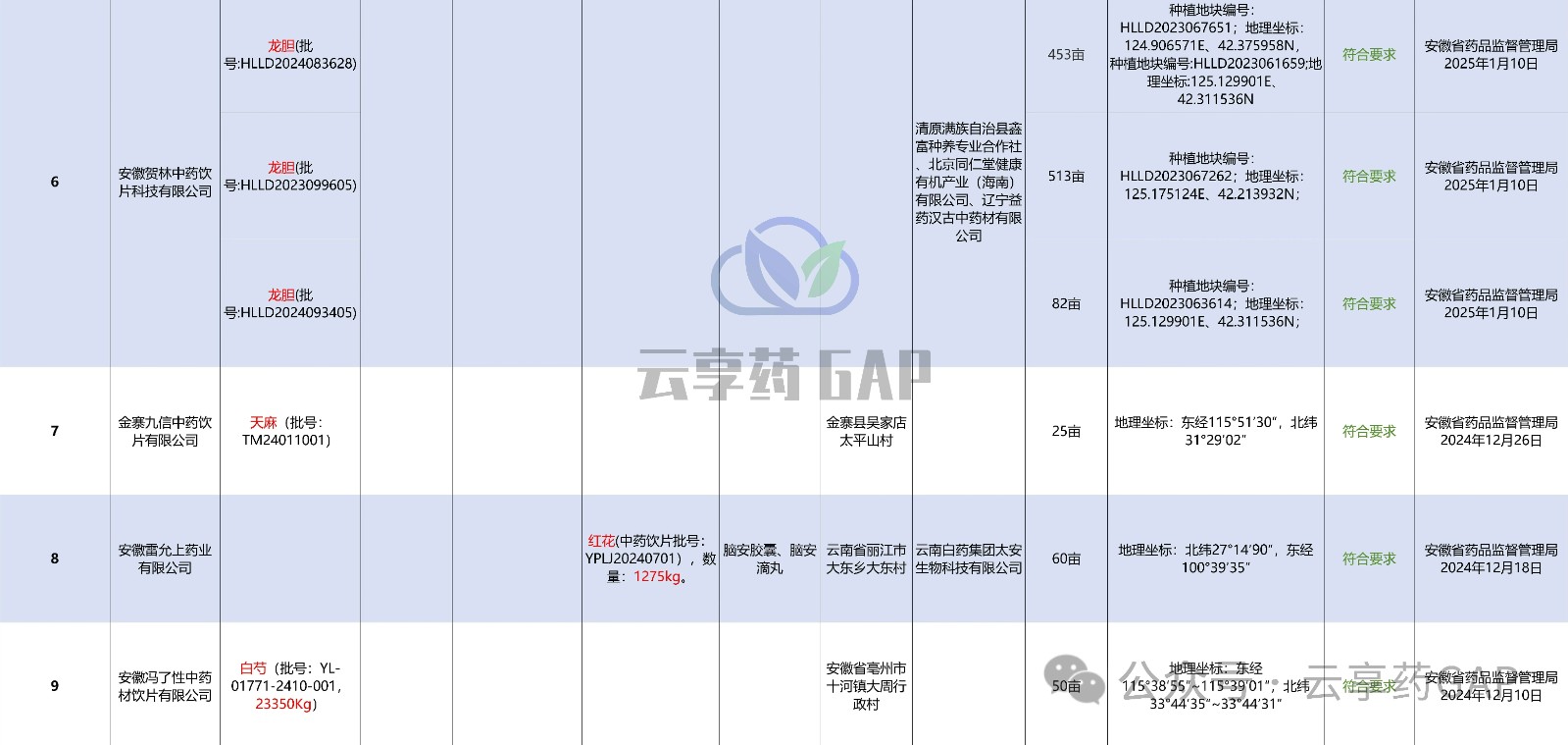 【GAP延伸检查】截至2025年11月安徽省已通过新版GAP符合性检查(延伸检查)的企业及药材品种